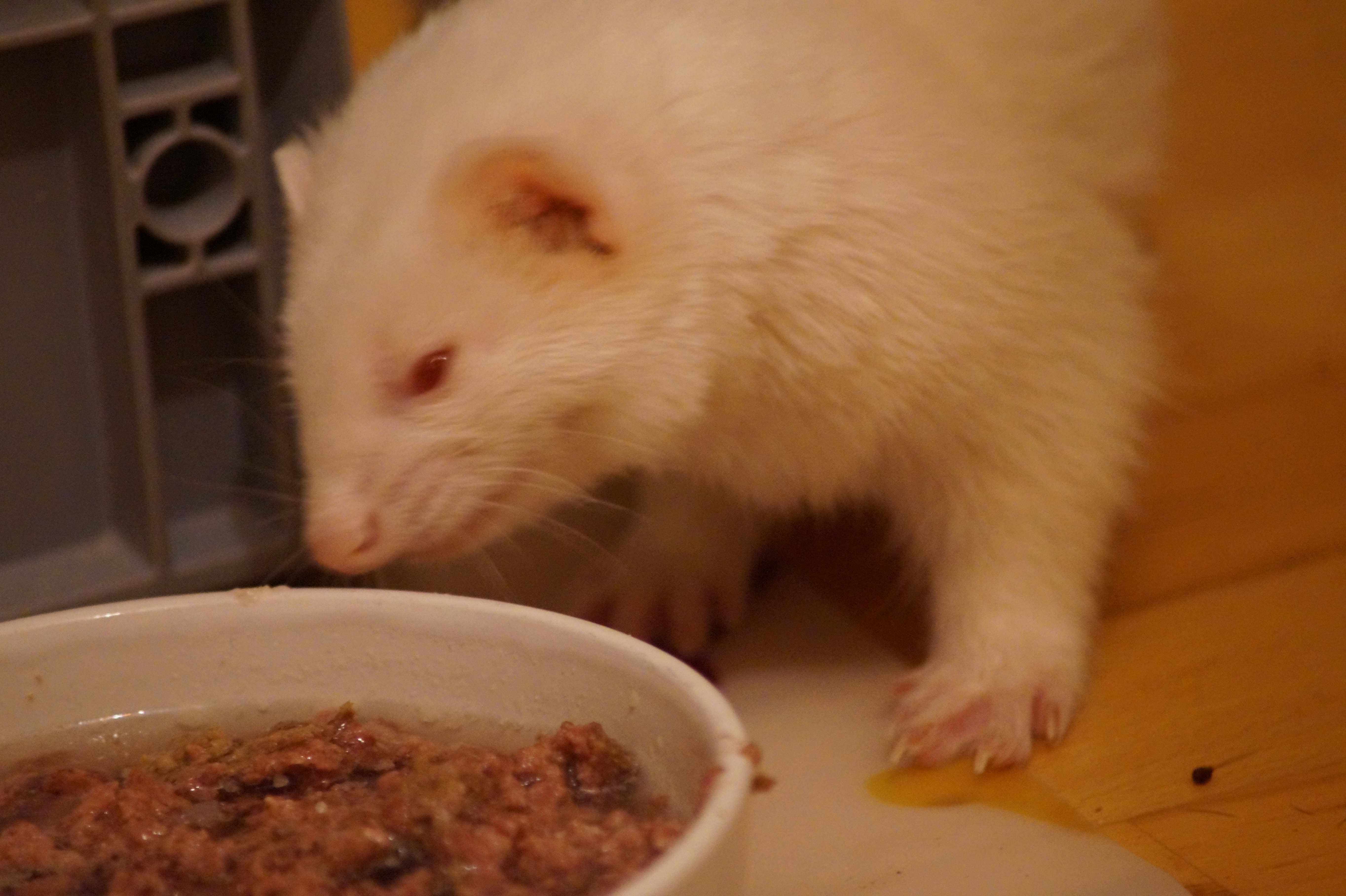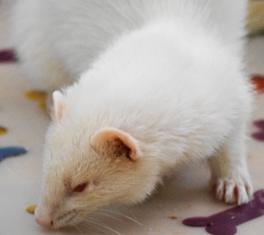 Das folgende passt zwar nicht so in diese Kategorie - Das Frettchen ist auf einem Auge blind geworden: